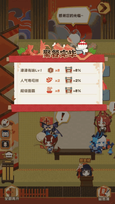 当然,如果你家大业大,家底雄厚,那你也可以带着崽们下馆子,在居酒屋使用金币或勾玉给式神点餐可以获得大量经验,当然,菜价也是一笔不小的费用。