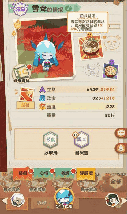 3、有针对性地制作美食,注意式神喜好或讨厌的美食