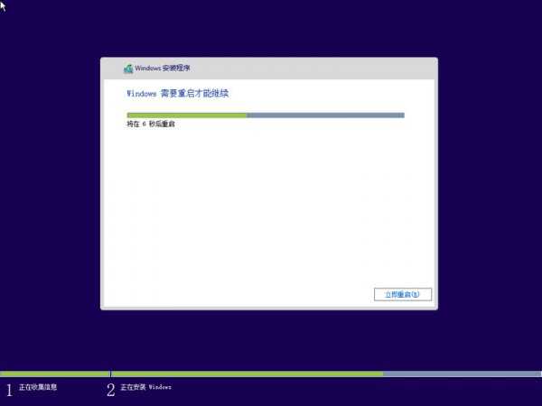 重启后将继续安装……