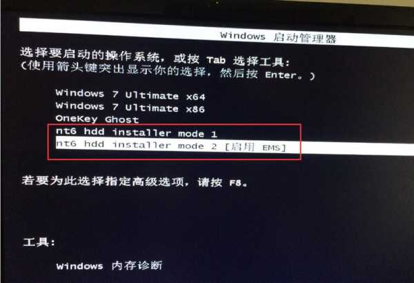 重启后用箭头上下键选择红框内的任意一项:nt6的加载项。回车即可。