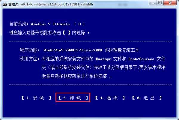安装完成后重新打开NT6 按“2,卸载”即可卸载启动项。