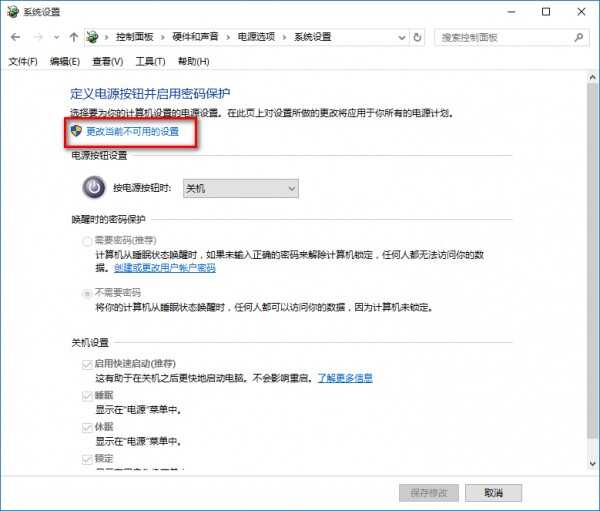 选择更改当前不可用设置,如下图所示