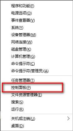 在弹出菜单选择控制面板,如下图所示