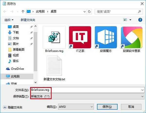 其实这项功能并没有完全消失,我们可以通过添加注册表项目的方式将其找回。方法很简单,将以下代码复制粘贴到记事本中,另存为“所有文件(*.*)”,文件扩展名为“.reg”即可(如下图,文件名可随意)。该方法同样适用于Windows8/Windows 8.1系统。