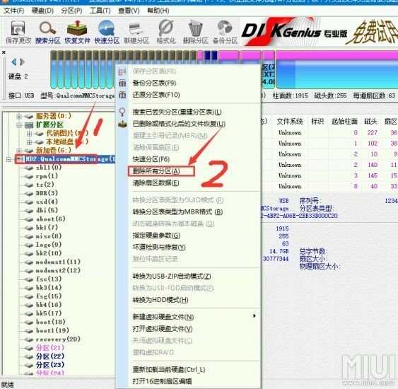 进不去“感叹号”和进去是“闪电+齿轮”的情况,需要从删除所有分区那里开始重刷