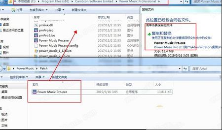 9、将补丁Power Music Pro.exe复制到软件的安装地址替换主程序就可以正常使用;
