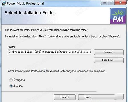 5、设置安装地址C:\Program Files (x86)\Cambron Software Limited\Power Music Professional\;