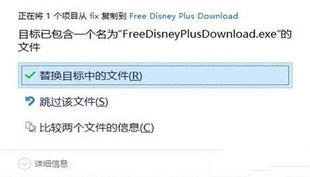 4、将FreeDisneyPlusDownload.exe复制到安装目录中,点击替换目标中的文件。