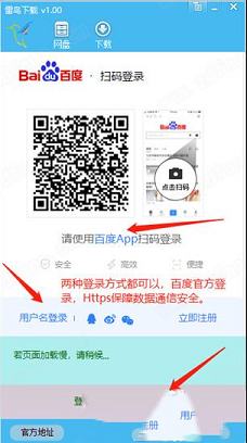 云盘登录1、运行软件后,首先需要登录百度账号。在网盘页面点击网盘登录按钮。登录是基于百度官方入口,受官方Https协议保护,安全可靠。