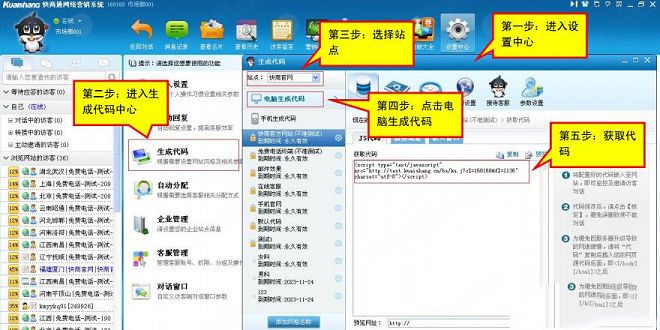 1、PC 生成代码操作步骤:第一步:登录在线客服客户端,点击【设置中心】—【生成代码】点击复制。复制上面的代码,通过 FTP 上传,放到网站源代码的 之后。通过 FTP 上传快商通代码之后,便可刷新网站查看!此代码可以嵌入到网站、博客、邮件、论坛、微信等各大网络平台。