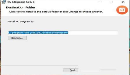 3、点击“Change”可更改安装软件位置;安装向导默认设置的软件默认安装路径为C:\Program Files (x86)\4KDownload\4kstogram