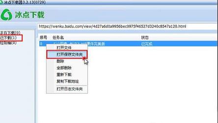 3、下载完成后,点击左侧“已下载”,在文档名称上点右键选择“打开保存文件夹”: