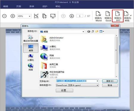 4、再用万兴PDF打开下载的PDF文档,点击上方的“转换为PPT”按钮: