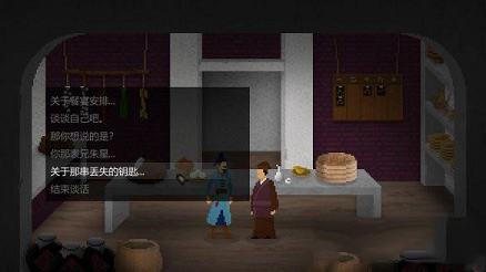15、前往厨房和前门分别和朱师傅还有守卫对话获得余下两枚钥匙。