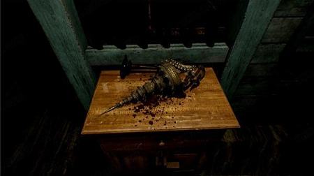 在保险柜上输入1947(女儿的出生年份),保险柜里出现纸条,上书“Why?Why I have to die mum?I want to live.No matter,what!”(为什么?妈妈,为什么我一定要死?我一定要活下去,无论如何!)。查看后出现一个人,然后消失了。点保险柜旁的脚印再次出现。多点她几下她会把双手放开(较恐怖)。