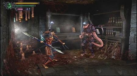 3、在进入桥另一边的大门后,会到达一个广场,广场上会先后出现许多敌人(如果玩家玩的不是简单模式,拿斧头的大型牛还会丢斧头攻击你,最好先防御等他丢完斧头后再攻击。),打倒敌人后进入广场西北方的门,然后会看到许多敌人正在攻击城中的士兵,若是救到士兵,再与士兵交谈,便能获赠一株草药(通常你会看到士兵面前地上有发光物,那就是就到士兵的谢礼了),打倒所有的敌人后,走到西边城墙崩坏的缺口前,使用之前得到的绳梯,便可到达城墙外面。