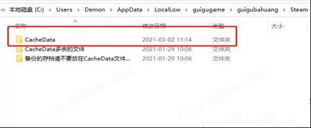 2、将CacheData内的文件覆盖到C:\Users(用户)\你的用户名\AppData\LocalLow\guigugame\guigubahuang\Steam\CacheData文件夹下即可