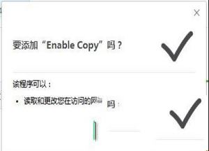 1、先解压安装包,然后将“Enable Copy_1_15_.crx”直接拖拽到浏览器当中2、之后弹出窗口,直接点击“确定”