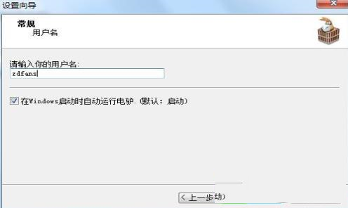 3、输入你的用户名,比如输入zdfans,可以不勾选windows启动时自动过行电驴;