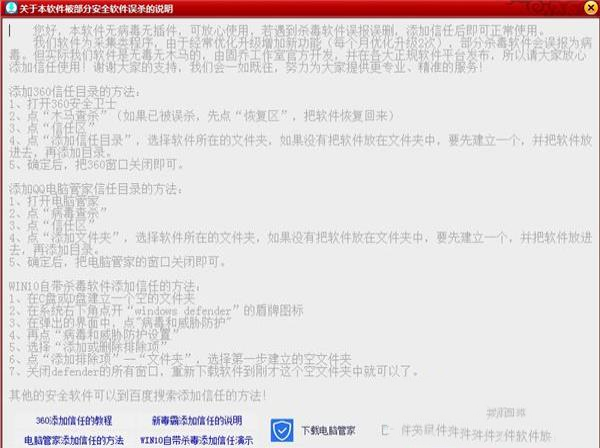 我们软件为采集类程序,由于经常优化升级增加新功能(每个月优化升级2次),部分杀毒软件会误报为病毒。但实际我们软件是无毒无木马的,由固乔工作室官方开发,并在各大正规软件平台发布,所以请大家放心添加信任使用!谢谢大家的支持,我们会一如既往,努力为大家提供更专业、精准的服务!