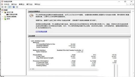 8、打开性能监视器就可以显示性能监视器,这些工具都是win电脑自带的