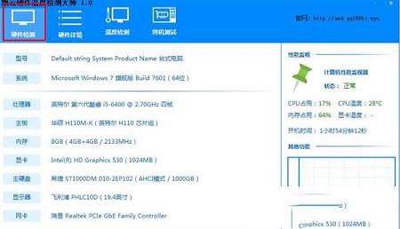 1、硬件检测用户可在“硬件概览”中看到自己计算机的硬件配置报告,包括操作系统处理器型号、主板型号等;