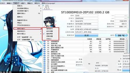 4、在crystaldiskinfo的功能中可以设置警告功能,包括发送右键警告以及修改警告的声音等等。