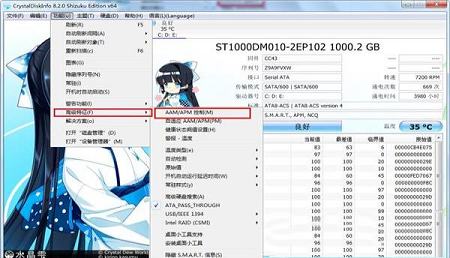 6、使用crystaldiskinfo合理的设置自动噪音管理AAM和高级电源管理APM可以让硬盘既保证性能又减少消耗。