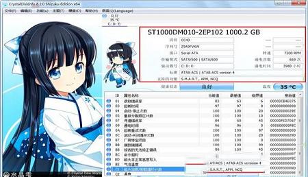 CrystalDiskInfo是一款免费的检测硬盘驱动的软件,CrystalDiskInfo可以告诉我们当前硬盘的健康状态,并显示出当前硬盘的详细信息、通过读取磁盘S.M.A.R.T信息来检测磁盘的温度与健康状态是CrystalDiskInfo的主要功能。可以随时查看健康状态,软件会自动给与评分,还可以检测温度等等。可以查看多种信息例如接口、转速、温度、使用时间等。只需要在运行的时候进行一次短暂的扫描,就可以将相关读取并显示到程序窗口中,但是很多参数数据都比较专业,普通用户也许不是很容易明白,不过比较常规的信息都显示在比较显眼的地方了,比如硬盘当前温度、健康状态、序列号、缓存、容量等,有了这些信息,相信也可以对硬盘了解个大概,你只要登录了这个软件,观察一段时间,你可以看到软件里面显示的数值是会随时改变的,根据每个时间段或者是运行程序的不同,所相应的数字也是不一样的。对于专业人士,可以看到自己想要的相关数据,非常具体。还可以更换不同的颜色皮肤,用户能按照自己的喜爱来更换。时不时对硬盘进行检测,不仅有利于硬盘的持久使用,而且对数据的安全保护也是至关重要的。当硬盘快要损坏时还会发出警报,随时保护你的数据情况。本次小编为大家带来的是这款软件的绿色萌化版,无需安装,且在原来的基础上添加了萌系动漫人物,萌化元素的加入让严肃呆板的程序界面变的生动可爱起来,使得硬盘检测也成了一种享受,感兴趣的朋友可以下载体验一下。