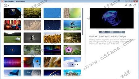 Deskscapes是一款专业实用的动态梦幻桌面工具,功能强大,便捷实用,拥有超过40种桌面特效,可以自定义动态壁纸,让你的桌面附有梦幻的感觉。它适用于WIN7、8、10等操作系统,拥有海量的附带壁纸,可以随意修改桌面布局,还可以自定义电脑屏幕保护程序,充分发挥用户的创意,打造独一无二的个性化桌面。它除了自身带的炫酷桌面壁纸外,还可以将自己喜欢的照片或者是视频制作成好看的电脑桌面,让用户的桌面动起来。它可以使用游戏视频,也可以放上MV,各种各样的玩法都能够让用户实现。此外,它所占内存非常小,用户在运行软件或玩游戏的时候感受不到一点卡顿,如果你觉得游戏过程中或者电影中桌面有声音,也可以选择关闭声音,非常的人性化。欢迎有兴趣的小伙伴前来下载体验!
