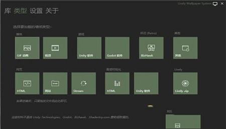 2、在类型中,详细列出了它支持的壁纸类型,点击对应按钮能够添加对应类型的动态壁纸。
