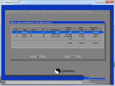 5、选择系统安装的目标分区,一定要选对,事先记录好C盘大小,这里以MB为单位。