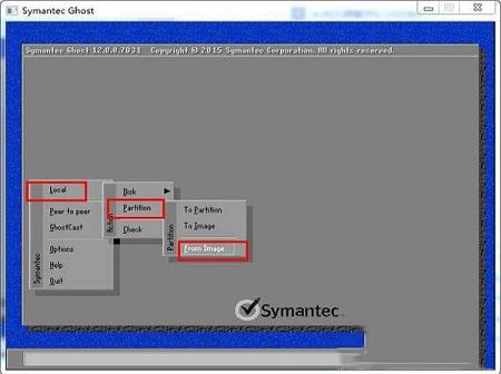 2、第一步选择“local”,也就是第一个;第二步选择“Partition”,第二个;第三步选择“From Image”,也就是选择系统所在盘符,第三个。