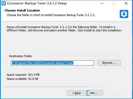 安装向导默认设置的软件默认安装路径为C:\Program Files (x86)\Cocosenor Backup Tuner