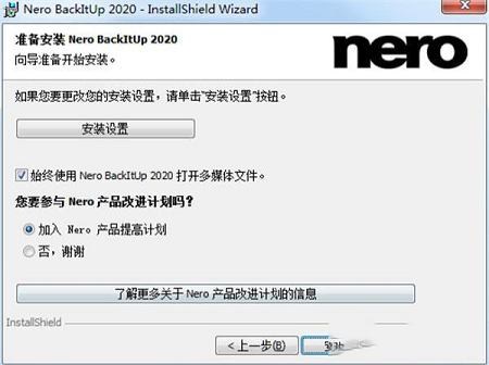 3、自行选择是否参加Nero产品改进计划,选择安装设置