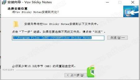 5.选择安装位置,默认路径为“C:\Program Files (x86)\VOVSOFT\Vov Sticky Notes”,建议最好不要安装到系统盘(C盘)