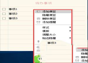 4、在待办事项的便签中,你可以双击事项,就可以输入待办的工作,同时你也可以鼠标右键点击标签,然后会弹出菜单栏,如下图所示,你可以添加便签、隐藏便签、删除便签等,这里有着很多的功能选项,你可以来体验使用。