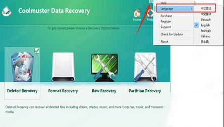 1、下载安装包并解压缩,运行一次Coolmuster Data Recovery.CN.cmd进行批处理,然后在Bin文件夹里面找到Coolmuster Data Recovery.exe运行即可2、进入软件主界面,找到Language,选择中文简体即可更换语言