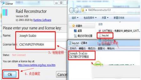 7、再将key.txt夹中的“Joseph Scalzo”和“CXCYMPGTFYPMKH”密钥信息复制粘贴到激活框中,最后点击OK确定即可
