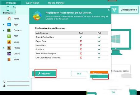 3、您可以通过USB电缆或WiFi将您的Android设备连接到该程序。