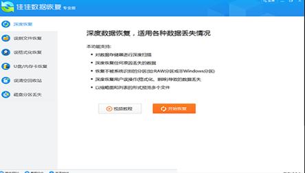 第一步、运行佳佳数据恢复软件。第二步、选择需要分析的分区,然后点"开始扫描"按钮。