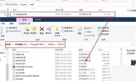 6、接着打开Crack夹,选择类型将“iphlpapi.dll”文件复制到软件目录中即可,默认安装目录为【C:\Program Files\JPSoft\TCC27】;