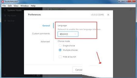 2、在Language下拉框中选择简体中文,再点击Set and Relaunch