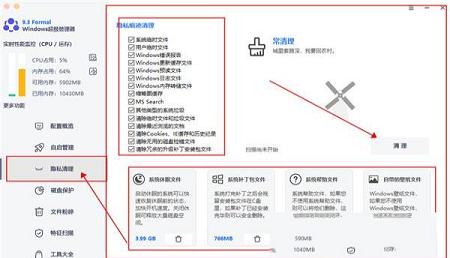 7.点击隐私清理即可清理电脑部分无用垃圾