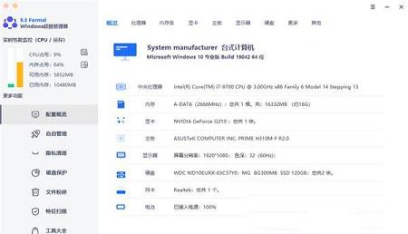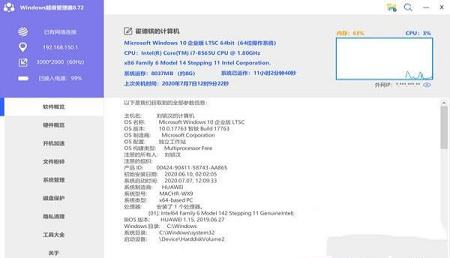 4.硬件概览:CPU信息,内存信息,磁盘信息,声卡网卡信息应有尽有。