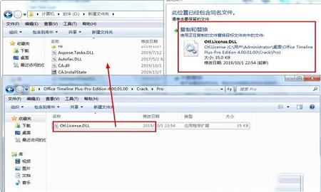 7、打开crack文件夹,选择一个版本文件夹,将Otl.License.DLL复制到安装目录中,点击替换目标中的文件