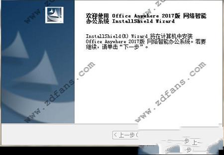 1.下载好数据包后,直接解压用鼠标双击“MYOA2017.exe”打开进入安装向导,点击“下一步”