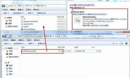 7、打开crack文件夹,选择一个版本文件夹,将Otl.License.DLL复制到安装目录中,点击替换目标中的文件