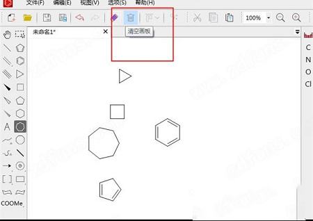 3、提示清空功能,如果你需要重新设计化学结构,可以点击这里将已经设计的内容清空;