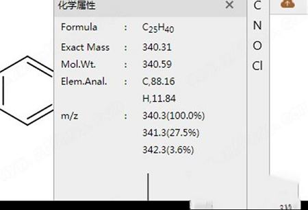 轻松查看结构式的各种化学属性,只要点击“属性分析”按键,各种属性一目了然。